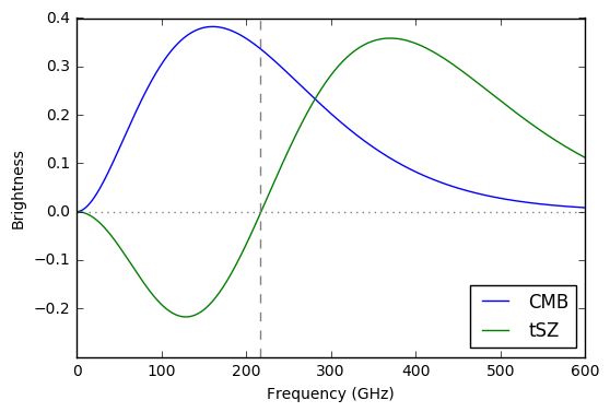So if you have a lot of photons and electrons that are colliding this way, the average energy of the photons shifts upward as more and more photons are gaining energy in the collisions. The number of photons at higher frequencies is increasing while the number of photons at lower frequencies is decreasing. For the Sunyaev-Zeldovich effect there is a magic number for this shift – 217 GHz. The photons that had frequencies smaller than 217 GHz gain energy and end up with frequencies higher than 217 GHz.